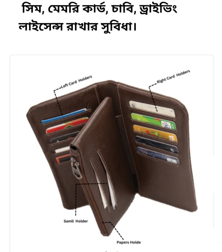 ১০০% চামড়ার তৈরী 2 পার্টের ওয়ালেট । এটি ব্যবহারে আপনি হবেন আরও স্মার্ট ও সৌখিন। আপনার প্রয়োজনীয় সব কিছুই রাখতে পারবেন এই ওয়ালেটটিতে। ৫০% কমে পাচ্ছেন সিমিত সময়ের জন্য মাত্র 699 টাকা । ডেলিভারী চার্জ সম্পূর্ন ফ্রি। আজই অর্ডার করুন।